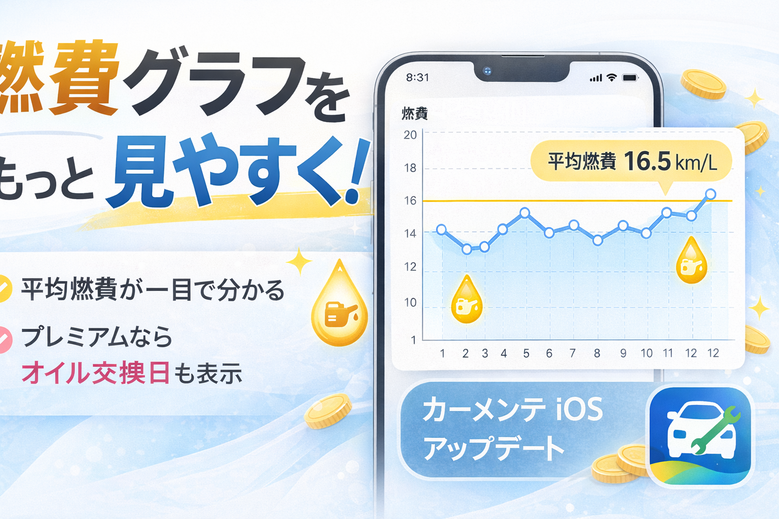 ・プレミアム機能ご利用の方向けに、エンジンオイル交換日を追加。